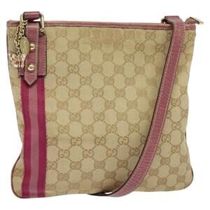 GUCCI GG Canvas Sherry Line Shoulder Bag Beige Gold