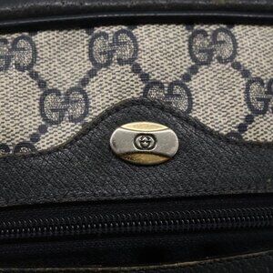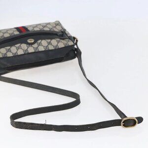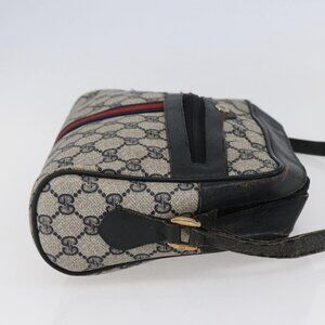 GUCCI GG Canvas Sherry Line Shoulder Bag PVC Leather Navy Red Auth