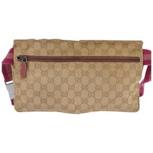 GUCCI GG Canvas Sherry Line Waist Bag Beige Pink Silver 28566 Auth 144532