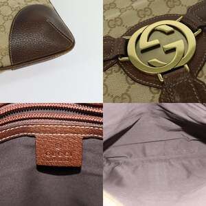 GUCCI GG Canvas Shoulder Bag Beige Gold