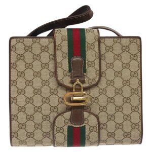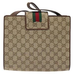 GUCCI GG Canvas Shoulder Bag Beige Gold Auth bs27064