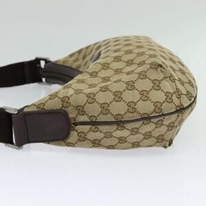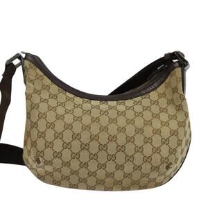 GUCCI GG Canvas Shoulder Bag Beige Silver