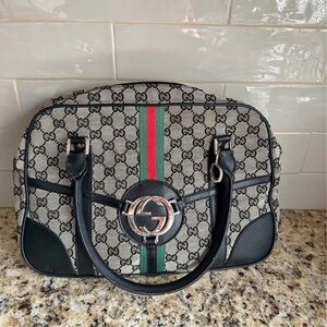 GUCCI GG Canvas Shoulder Bag Black Gold 001 14 0412 Auth ep12224