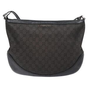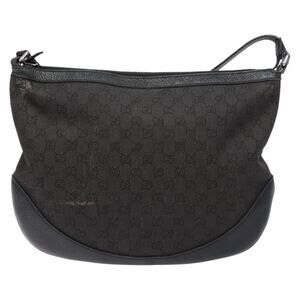 GUCCI GG Canvas Shoulder Bag Black Silver