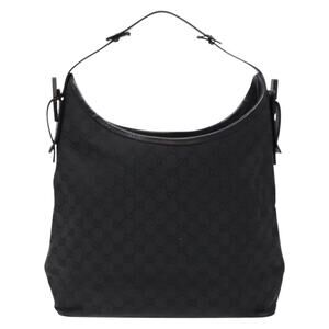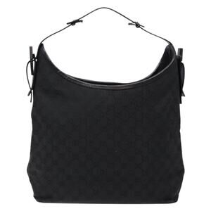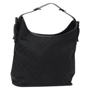 GUCCI GG Canvas Shoulder Bag Black Silver