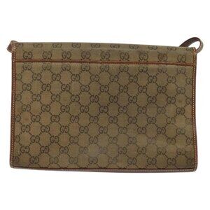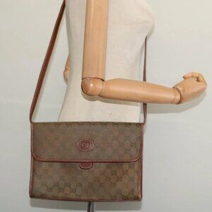 GUCCI GG Canvas Shoulder Bag Brown Gold