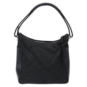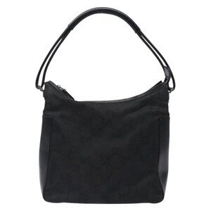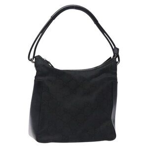 GUCCI GG Canvas Shoulder Bag Nylon Black Silver 001 3766 Auth BA4115