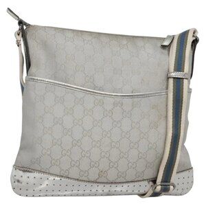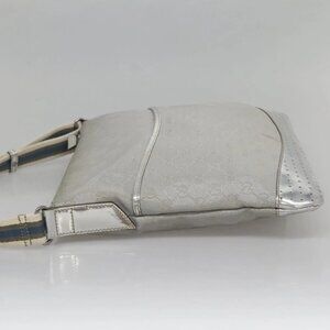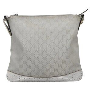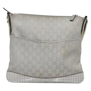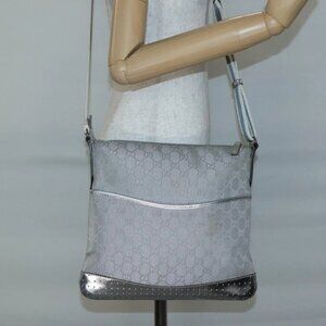 GUCCI GG Canvas Shoulder Bag Silver 145857 Auth ti3396