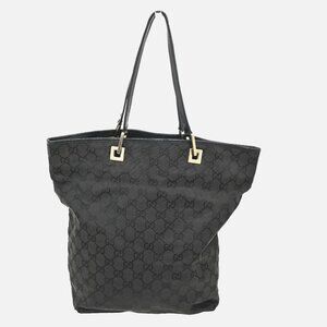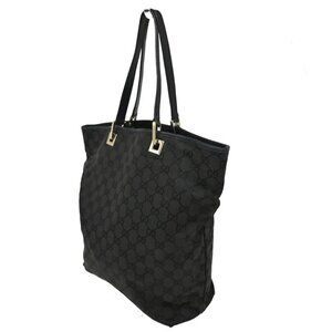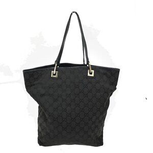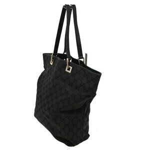 GUCCI GG Canvas Shoulder Tote Bag Leather canvas Black GHW Italy