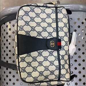 GUCCI GG Canvas Supreme Bamboo Bag Nylon PVC 3 Set Beige Black Auth