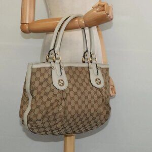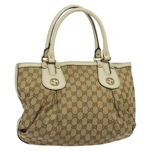 GUCCI GG Canvas Tote Bag Beige Gold 269953 Auth BA4969