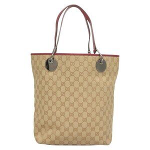 GUCCI GG Canvas Tote Bag Beige Silver 120836 Auth hk2844