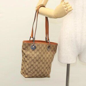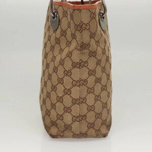 GUCCI GG Canvas Tote Bag Beige Silver 120840 Auth
