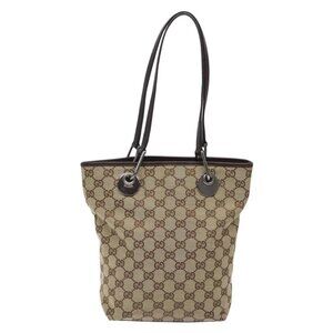 GUCCI GG Canvas Tote Bag Beige Silver 120840 Auth ep9457