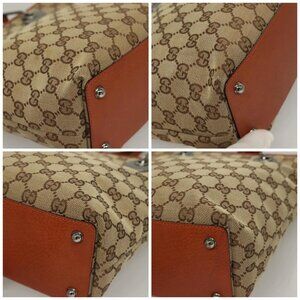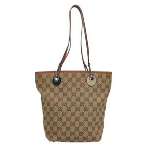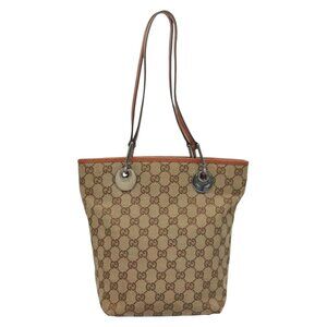 GUCCI GG Canvas Tote Bag Beige Silver 120840 Auth sw1192