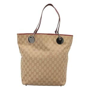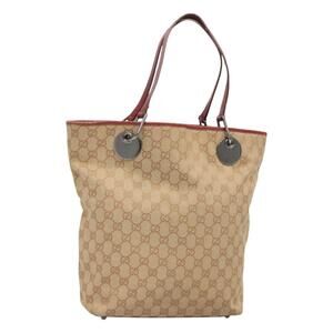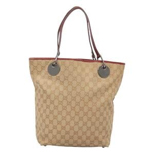 GUCCI GG Canvas Tote Bag Beige Silver
