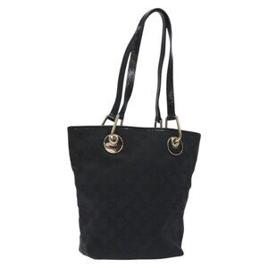 GUCCI GG Canvas Tote Bag Black Gold