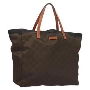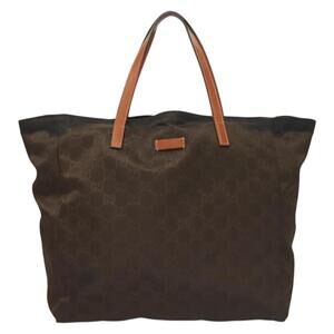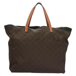 GUCCI GG Canvas Tote Bag Brown Gold