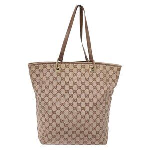 GUCCI GG Canvas Tote Bag Brown Gold Auth