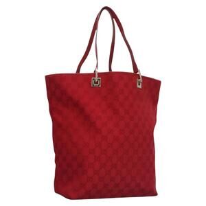 GUCCI GG Canvas Tote Bag Red Gold 002 002