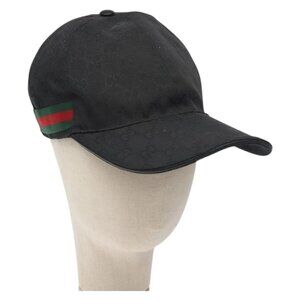 GUCCI GG Canvas Web Sherry Line Cap M Black Red Green 200035 Auth yk18705