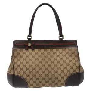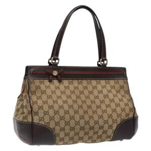 GUCCI GG Canvas Web Sherry Line Hand Bag Beige Gold Red