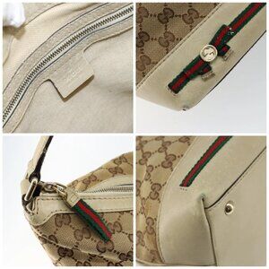GUCCI GG Canvas Web Sherry Line Pretty Bag Beige Gold