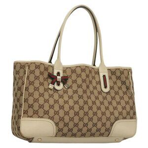 GUCCI GG Canvas Web Sherry Line Pretty Tote Bag Beige Gold 163805 Auth BA4357