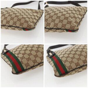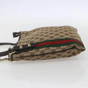 GUCCI GG Canvas Web Sherry Line Shoulder Bag Beige Gold Red 144388 Auth 155727