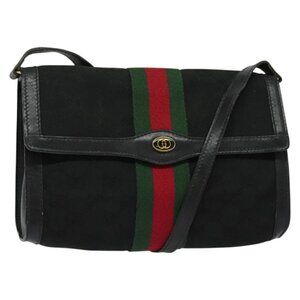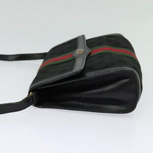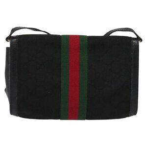 GUCCI GG Canvas Web Sherry Line Shoulder Bag Black Gold