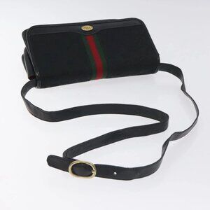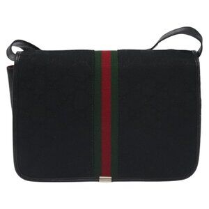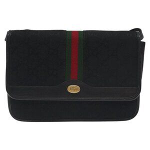 GUCCI GG Canvas Web Sherry Line Shoulder Bag Black Gold Red Auth