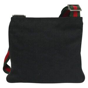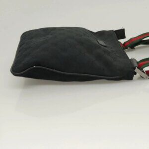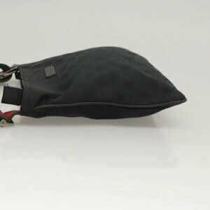 GUCCI GG Canvas Web Sherry Line Shoulder Bag Black Silver 146309 Auth 131956