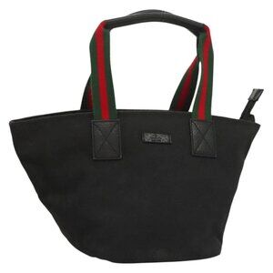GUCCI GG Canvas Web Sherry Line Tote Bag Black Silver 131228 Auth fm4817