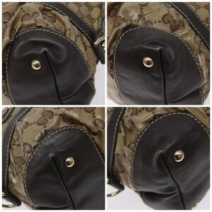 GUCCI GG Crystal Hand Bag Coated Canvas Brown Gold 223962 Auth 130181