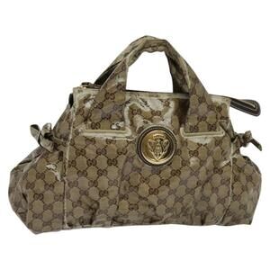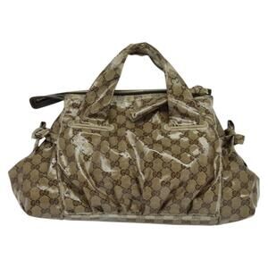 GUCCI GG Crystal Hand Bag Coated Canvas Brown Gold