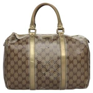 GUCCI GG Crystal Hand Bag Coated Canvas Brown Gold