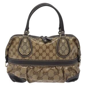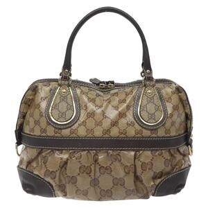 GUCCI GG Crystal Hand Bag Coated Canvas Brown Gold