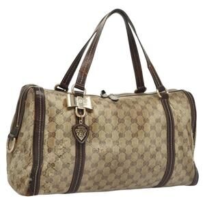 GUCCI GG Crystal Shoulder Bag Coated Canvas Brown Gold