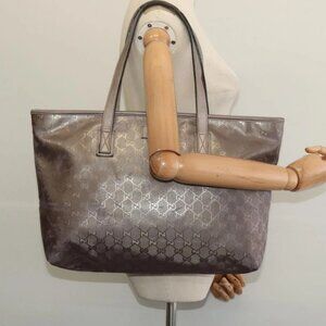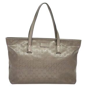 GUCCI GG Implementation Tote Bag PVC Beige Silver