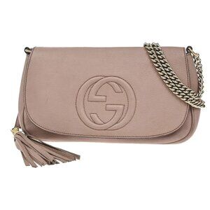 GUCCI GG Interlocking Chain Tassel Shoulder Hand Bag Leather Pink Gold 79EF745