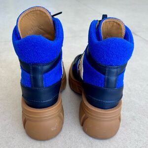 GUCCI GG Logo Ankle Combat Boots Romance Casy Blue Wool & Leather Lug Sole EU38