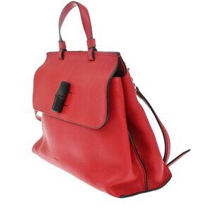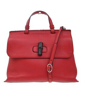 GUCCI GG Logo Daily 2Way Shoulder Hand Bag Bamboo Leather Red