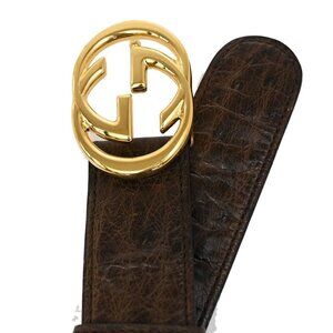 GUCCI GG Logo Interlocking Belt 70/28 Leather Brown GHW Italy 36KA819