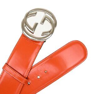 GUCCI GG Logo Interlocking Belt 75/30 Leather Orange SHW Italy 60KB122
