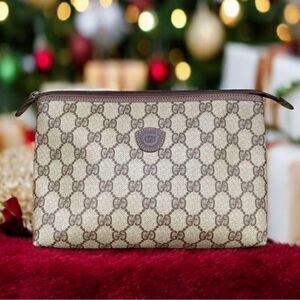 GUCCI GG Logo Tan/Brown Beauty Bag/Pouch/Crossbody w/COA. EUC Fits a phone.
