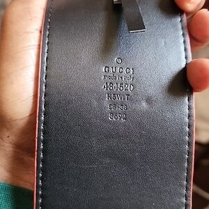 GUCCI GG Marmont Leather Belt – Red with Pearl-Embellished Gold Large Buckle-8692 Authentic – Size 38