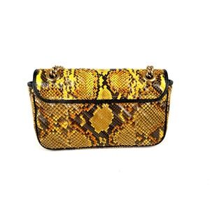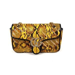 GUCCI GG Marmont Matellase Small Python Snakeskin Black Yellow Crossbody Bag