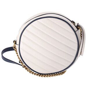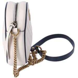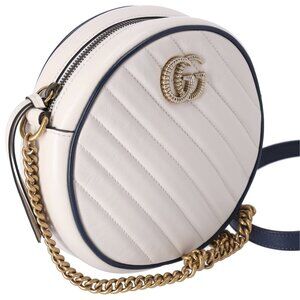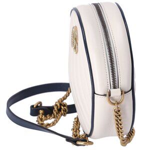 GUCCI GG Marmont Round Shoulder Bag 550154 White Navy Leather