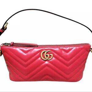 GUCCI GG Marmont Small Shoulder Bag Red Matelassé Chevron Leather 739166