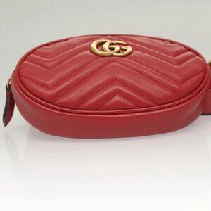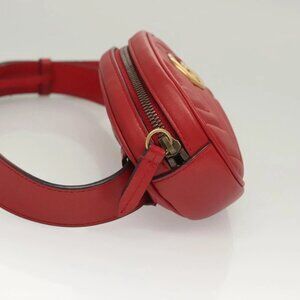 GUCCI GG Marmont Waist Bag Leather Red Gold